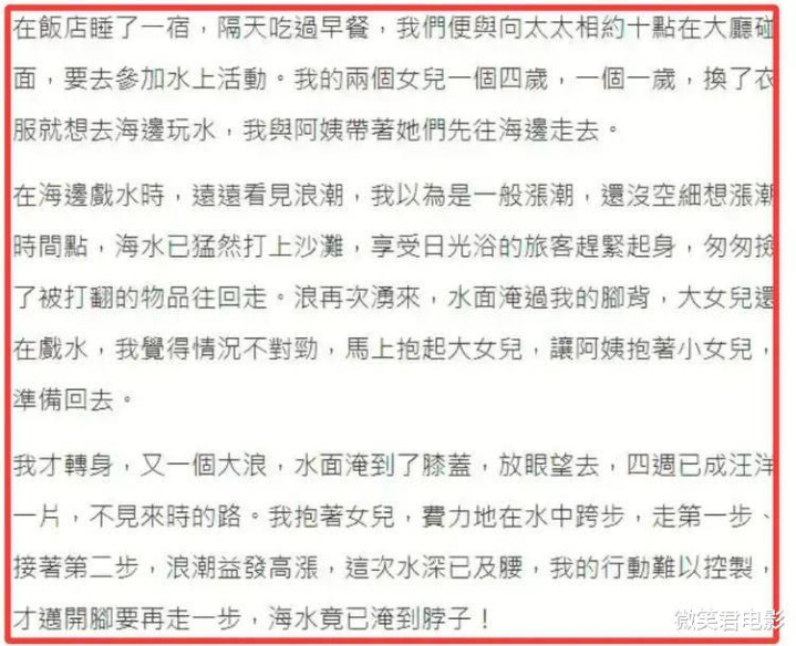 在混乱与恐惧交织的时刻,向太远远地看到了李连杰的身影。不会游泳的他,此刻就像溺水者抓住了最后的救命稻草,死死地扒着海边一根固定用的柱子,那柱子在海浪的冲击下微微晃动,却成了李连杰唯一的依靠。